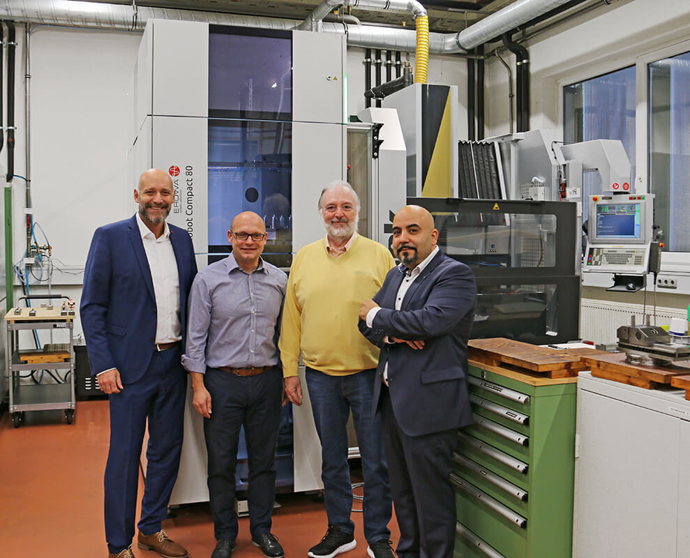 Von links nach rechts: Frank Pröpster (Geschäftsführer Erowa Technologien GmbH), Stefan Botsch (Geschäftsführer Ermet GmbH), Norbert Kempf (Geschäftsführer Sodick Deutschland GmbH), Salvatore Cocco (Gebietsverkaufsleiter Sodick Deutschland GmbH)